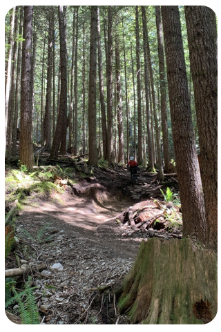 This trail is the ultimate fun playground of trails. There’s so much variety and so many options of line choice or features to take. Whether you’re plowing down through the roots or dropping a tree stump, you’re guaranteed a bloody good time. There are plenty of optional (non-intimidating) jumps to have fun with, and some technical corners to rip through.